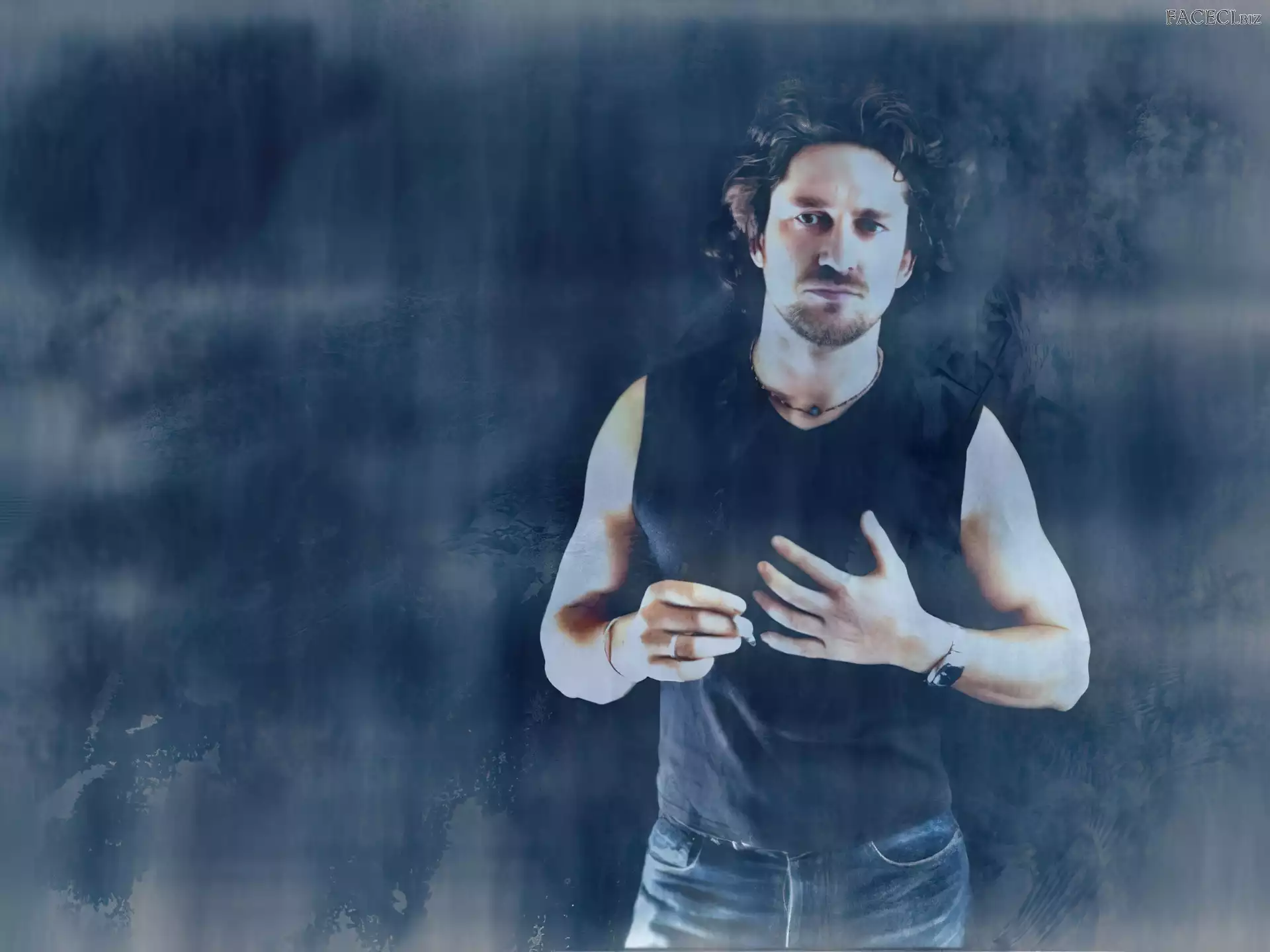 czarna koszulka, Gerard Butler, kręcone włosy - faceci.biz